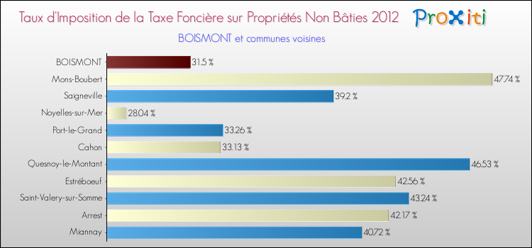 A noter : la valeur moyenne de ce taux de taxe foncière sur le non bâti dans les communes françaises similaires à Boismont était de 40.42 %, en 2012.