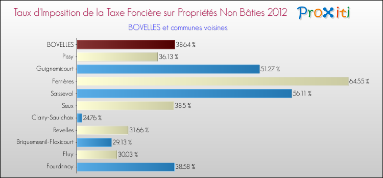 En 2012, le taux de la taxe foncière sur le non bâti vôté par le conseil municipal de Bovelles était de : 38.64 %.