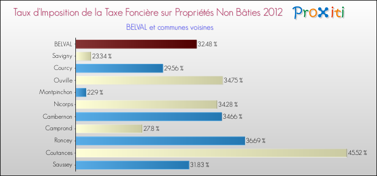 A noter : la valeur moyenne de ce taux de taxe foncière sur le non bâti dans les communes françaises similaires à Belval était de 30.09 %, en 2012.