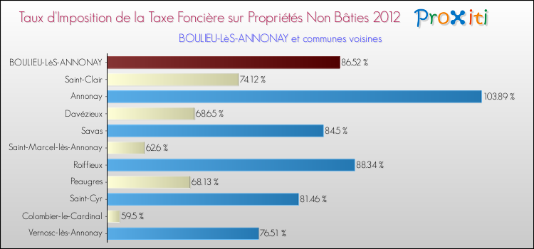 En 2012, le taux de la taxe foncière sur le non bâti vôté par le conseil municipal de Boulieu-lès-Annonay était de : 86.52 %.