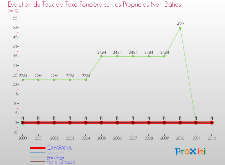 En 2012, le taux de la taxe foncière sur le non bâti vôté par le conseil municipal de Campana était de : 0 %.