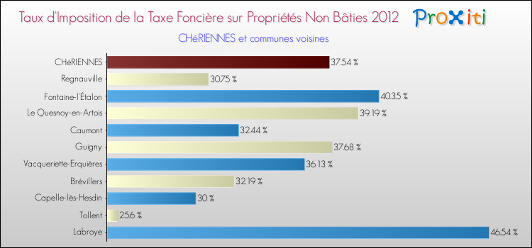 En 2012, le taux de la taxe foncière sur le non bâti vôté par le conseil municipal de Chériennes était de : 37.54 %.