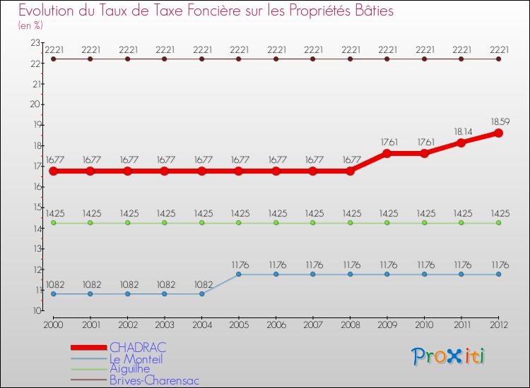 A Chadrac, le taux de taxe foncière sur le bâti a donc augmenté de 10.85 % entre 2000 et 2012.