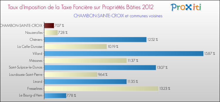 A noter : la valeur moyenne de ce taux de taxe foncière sur le bâti dans les communes françaises similaires à Chambon-Sainte-Croix était de 10.09 %, en 2012.