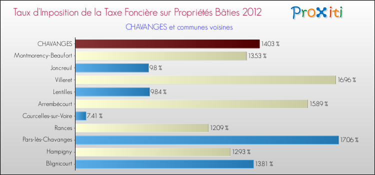 A noter : la valeur moyenne de ce taux de taxe foncière sur le bâti dans les communes françaises similaires à Chavanges était de 13.59 %, en 2012.