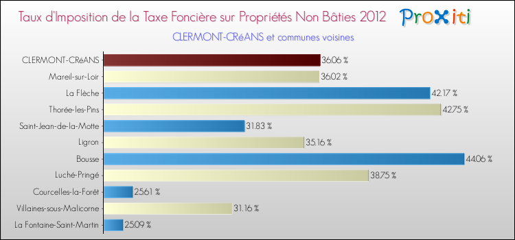 En 2012, le taux de la taxe foncière sur le non bâti vôté par le conseil municipal de Clermont-Créans était de : 36.06 %.