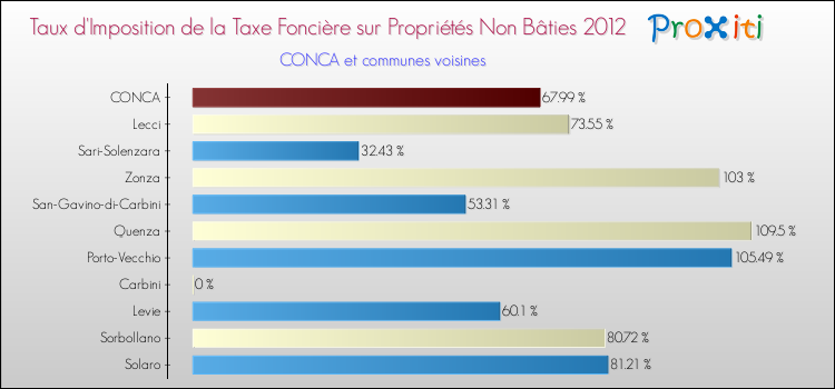 Pendant la même période, les communes françaises similaires à Conca, ont vu leur taux de taxe foncière sur le non bâti augmenter de 14.97 % en moyenne entre 2000 et 2012.