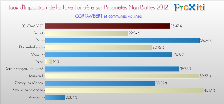 Vous trouverez ci-dessous des graphiques qui vous permettent de situer le taux de la taxe foncière sur le non bâti de Cortambert par rapport aux communes voisines.