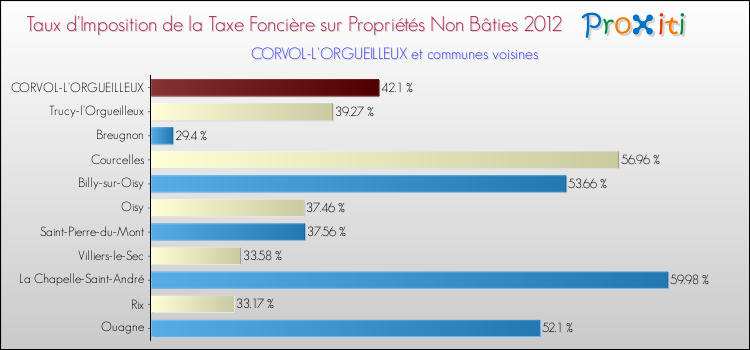 En 2012, le taux de la taxe foncière sur le non bâti vôté par le conseil municipal de Corvol-l'Orgueilleux était de : 42.1 %.