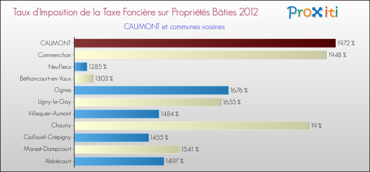 A noter : la valeur moyenne de ce taux de taxe foncière sur le bâti dans les communes françaises similaires à Caumont était de 15.75 %, en 2012.