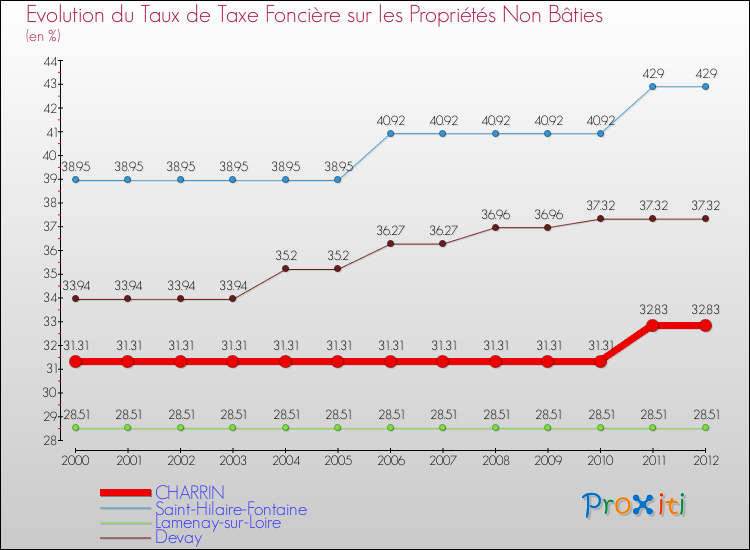 En 2012, le taux de la taxe foncière sur le non bâti vôté par le conseil municipal de Charrin était de : 32.83 %.