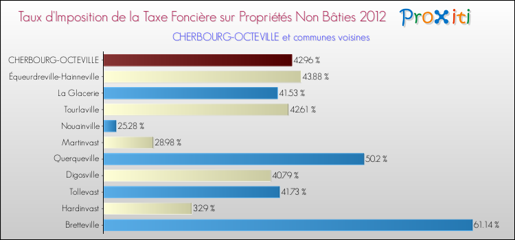 Pendant la même période, les communes françaises similaires à Cherbourg-Octeville, ont vu leur taux de taxe foncière sur le non bâti augmenter de 2.05 % en moyenne entre 2000 et 2012.