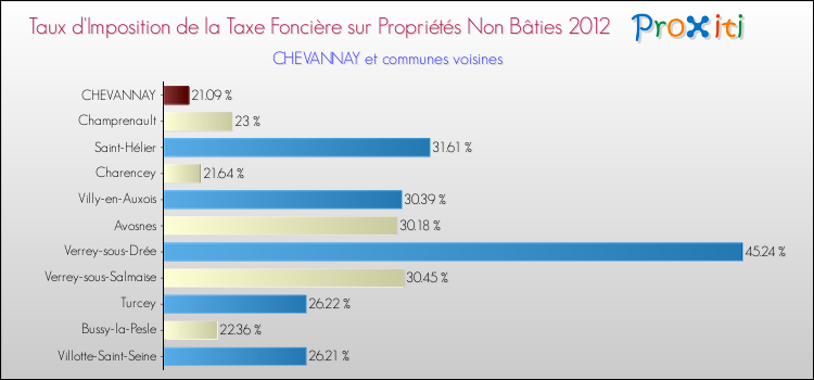 En 2012, le taux de la taxe foncière sur le non bâti vôté par le conseil municipal de Chevannay était de : 21.09 %.
