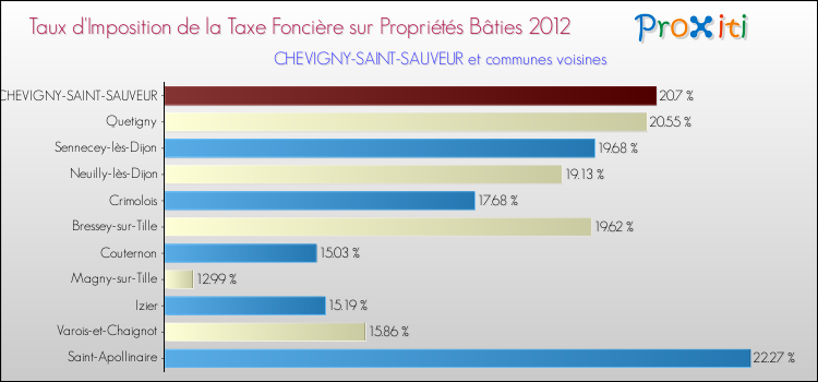 En 2012, le taux de la taxe foncière sur le bâti vôté par le conseil municipal de Chevigny-Saint-Sauveur était de : 20.7 %.