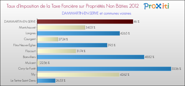 En 2012, le taux de la taxe foncière sur le non bâti vôté par le conseil municipal de Dammartin-en-Serve était de : 46 %.