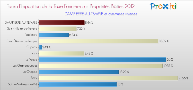A noter : la valeur moyenne de ce taux de taxe foncière sur le bâti dans les communes françaises similaires à Dampierre-au-Temple était de 11.88 %, en 2012.