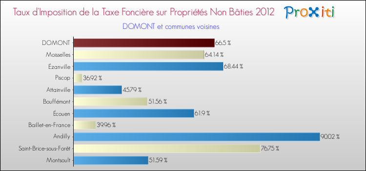 En 2012, le taux de la taxe foncière sur le non bâti vôté par le conseil municipal de Domont était de : 66.5 %.
