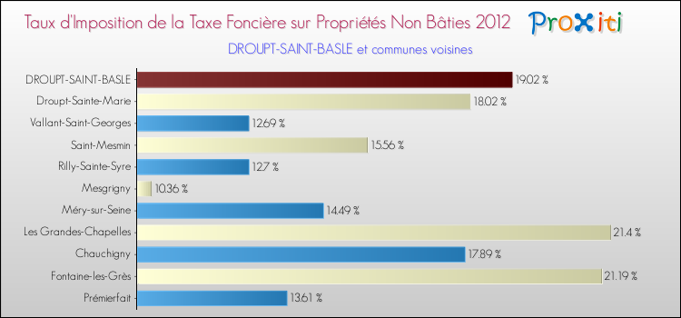 En 2012, le taux de la taxe foncière sur le non bâti vôté par le conseil municipal de Droupt-Saint-Basle était de : 19.02 %.