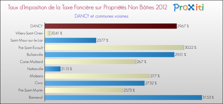 En 2012, le taux de la taxe foncière sur le non bâti vôté par le conseil municipal de Dancy était de : 29.67 %.
