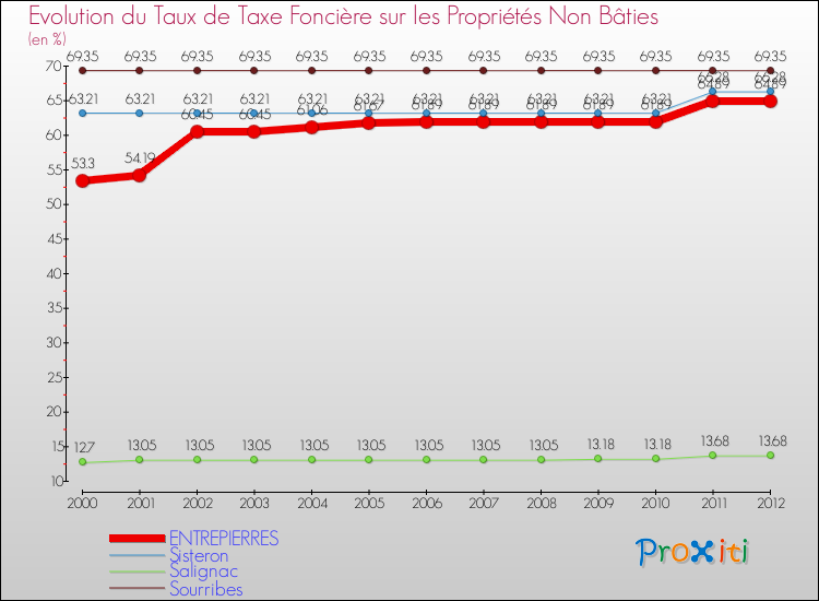 A Entrepierres, le taux de taxe foncière sur le non bâti a donc augmenté de 21.74 % entre 2000 et 2012.