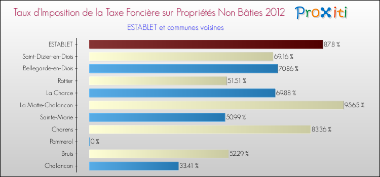 Vous trouverez ci-dessous des graphiques qui vous permettent de situer le taux de la taxe foncière sur le non bâti de Establet par rapport aux communes voisines.