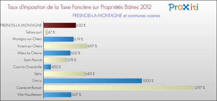 A noter : la valeur moyenne de ce taux de taxe foncière sur le bâti dans les communes françaises similaires à Fresnois-la-Montagne était de 11.88 %, en 2012.