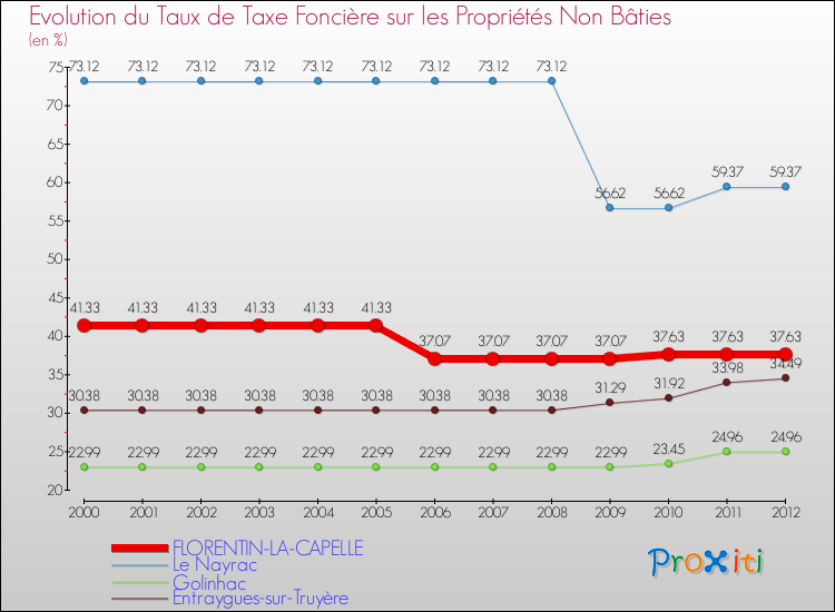 A Florentin-la-Capelle, le taux de taxe foncière sur le non bâti a donc baissé de 8.95 % entre 2000 et 2012.