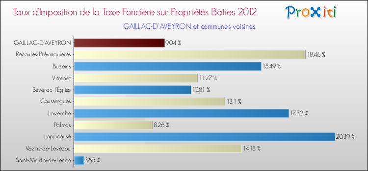 A noter : la valeur moyenne de ce taux de taxe foncière sur le bâti dans les communes françaises similaires à Gaillac-d'Aveyron était de 11.88 %, en 2012.