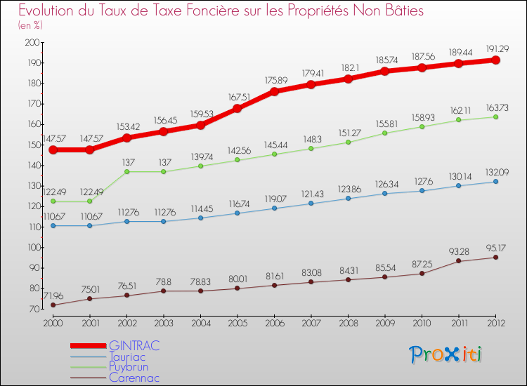 A Gintrac, le taux de taxe foncière sur le non bâti a donc augmenté de 29.63 % entre 2000 et 2012.