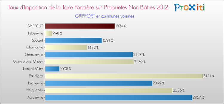 En 2012, le taux de la taxe foncière sur le non bâti vôté par le conseil municipal de Gripport était de : 18.74 %.