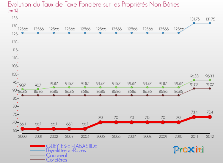 A Gueytes-et-Labastide, le taux de taxe foncière sur le non bâti a donc augmenté de 11.04 % entre 2000 et 2012.