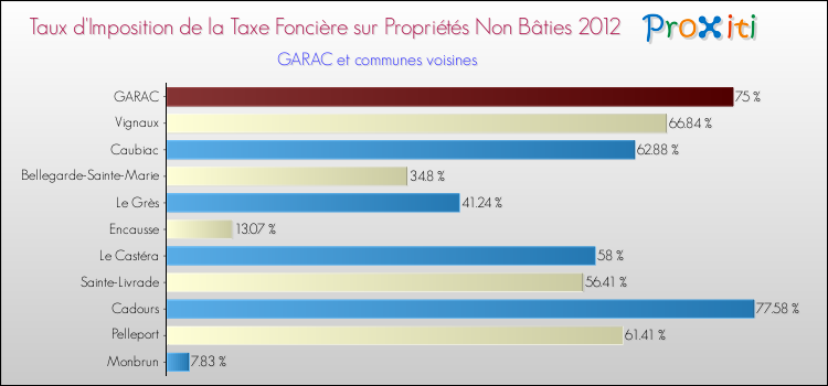 En 2012, le taux de la taxe foncière sur le non bâti vôté par le conseil municipal de Garac était de : 75 %.