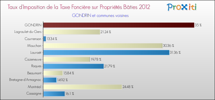 A noter : la valeur moyenne de ce taux de taxe foncière sur le bâti dans les communes françaises similaires à Gondrin était de 13.59 %, en 2012.