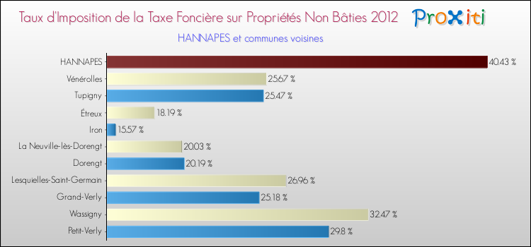 En 2012, le taux de la taxe foncière sur le non bâti vôté par le conseil municipal de Hannapes était de : 40.43 %.