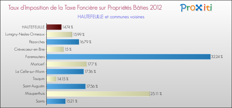 A noter : la valeur moyenne de ce taux de taxe foncière sur le bâti dans les communes françaises similaires à Hautefeuille était de 11.88 %, en 2012.
