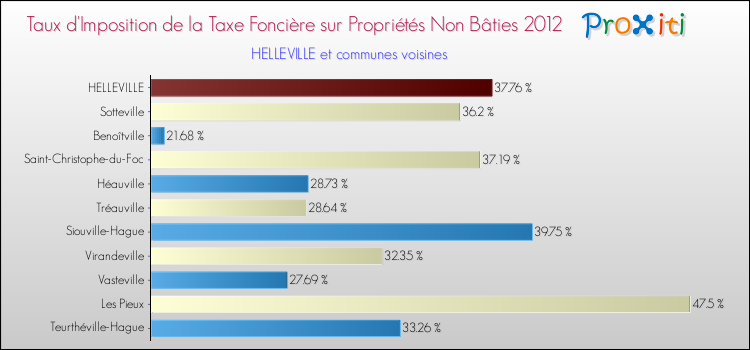 En 2012, le taux de la taxe foncière sur le non bâti vôté par le conseil municipal de Helleville était de : 37.76 %.