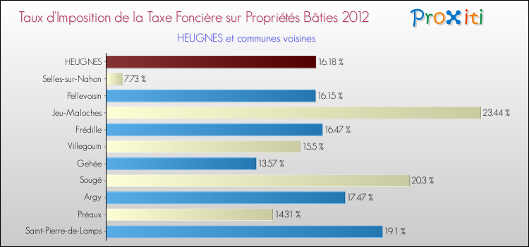 A noter : la valeur moyenne de ce taux de taxe foncière sur le bâti dans les communes françaises similaires à Heugnes était de 14.72 %, en 2012.