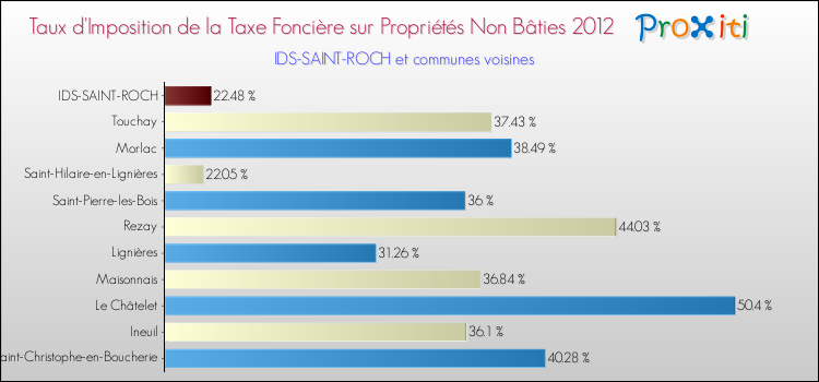 En 2012, le taux de la taxe foncière sur le non bâti vôté par le conseil municipal de Ids-Saint-Roch était de : 22.48 %.