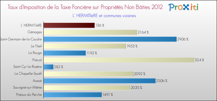 A noter : la valeur moyenne de ce taux de taxe foncière sur le non bâti dans les communes françaises similaires à L' Hermitière était de 30.09 %, en 2012.