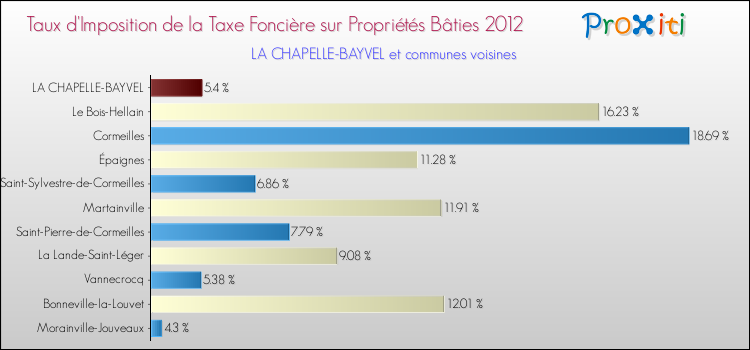 A noter : la valeur moyenne de ce taux de taxe foncière sur le bâti dans les communes françaises similaires à La Chapelle-Bayvel était de 11.88 %, en 2012.