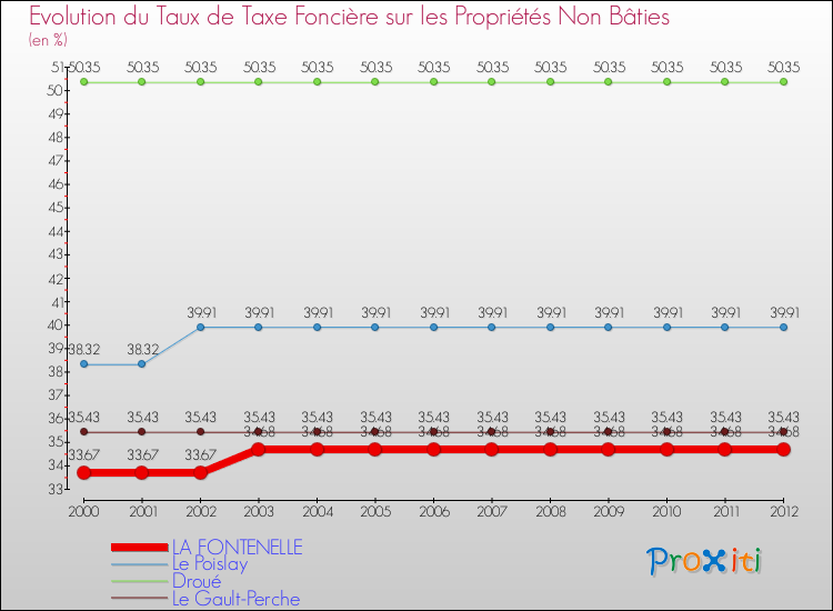 A La Fontenelle, le taux de taxe foncière sur le non bâti a donc augmenté de 3 % entre 2000 et 2012.