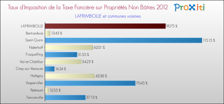En 2012, le taux de la taxe foncière sur le non bâti vôté par le conseil municipal de Lafrimbolle était de : 90.75 %.
