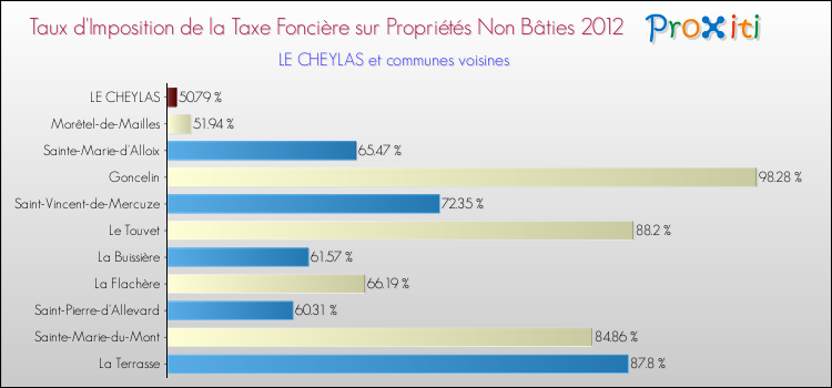 En 2012, le taux de la taxe foncière sur le non bâti vôté par le conseil municipal de Le Cheylas était de : 50.79 %.