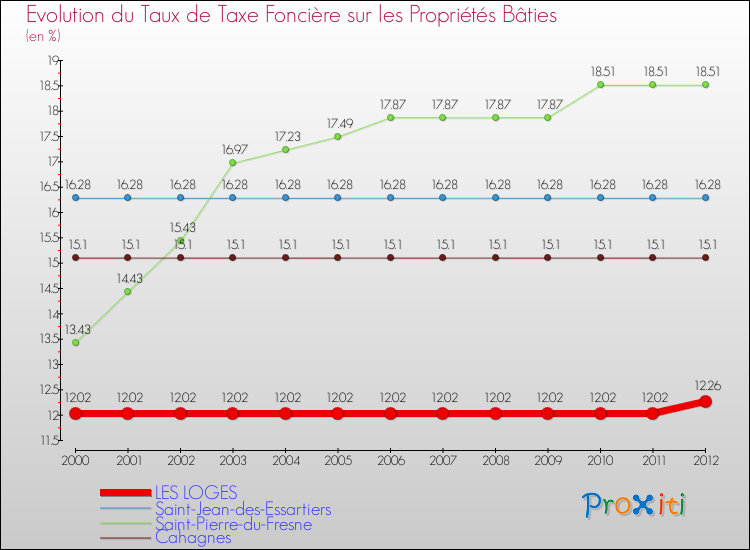 A Les Loges, le taux de taxe foncière sur le bâti a donc augmenté de 2 % entre 2000 et 2012.