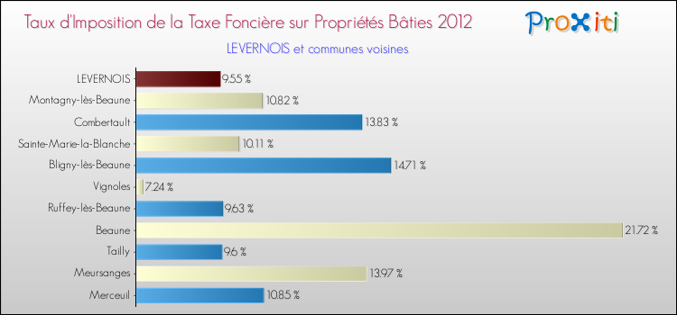 A noter : la valeur moyenne de ce taux de taxe foncière sur le bâti dans les communes françaises similaires à Levernois était de 14.72 %, en 2012.