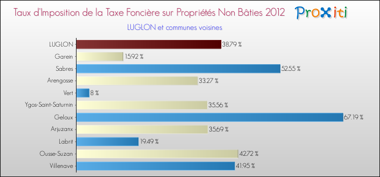 En 2012, le taux de la taxe foncière sur le non bâti vôté par le conseil municipal de Luglon était de : 38.79 %.