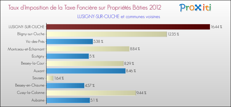 A noter : la valeur moyenne de ce taux de taxe foncière sur le bâti dans les communes françaises similaires à Lusigny-sur-Ouche était de 10.09 %, en 2012.