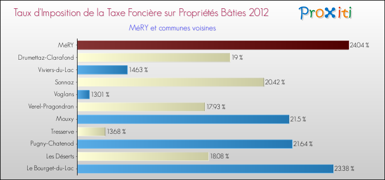 En 2012, le taux de la taxe foncière sur le bâti vôté par le conseil municipal de Méry était de : 24.04 %.