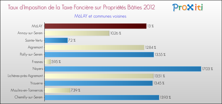A noter : la valeur moyenne de ce taux de taxe foncière sur le bâti dans les communes françaises similaires à Môlay était de 10.09 %, en 2012.