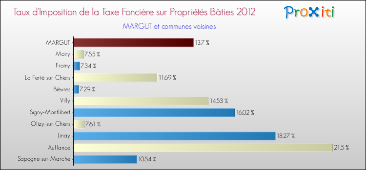 A noter : la valeur moyenne de ce taux de taxe foncière sur le bâti dans les communes françaises similaires à Margut était de 13.59 %, en 2012.
